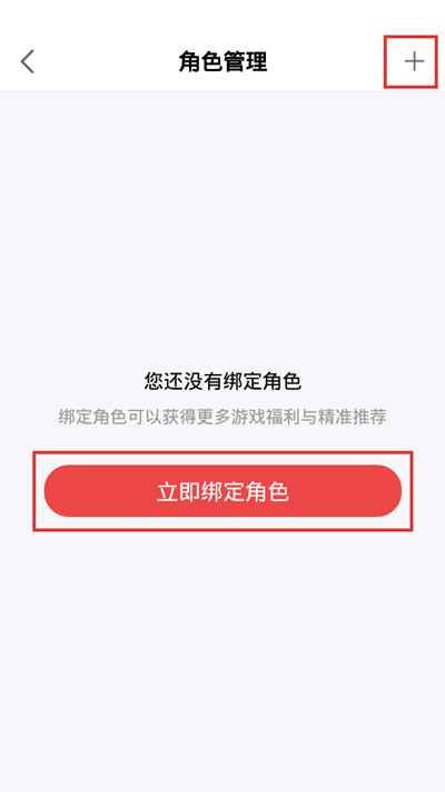 3.进入角色管理页面后,点击【立即绑定角色】,或者点击右上角的【 】进入绑定角色;