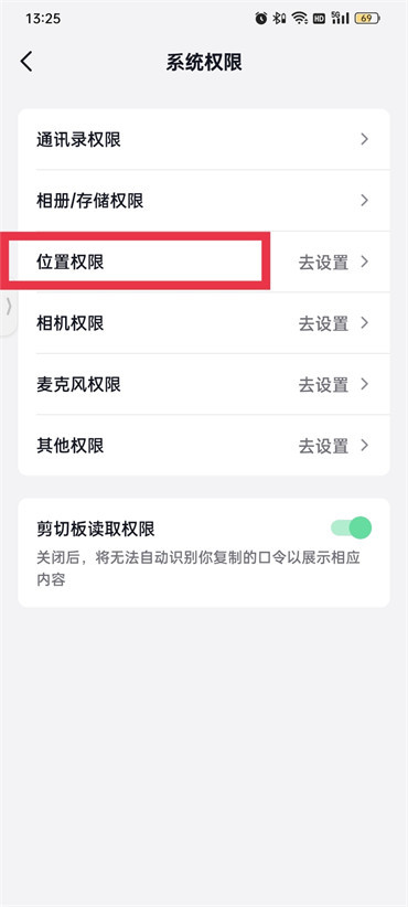 5.来到系统权限页面中点击【位置权限】;