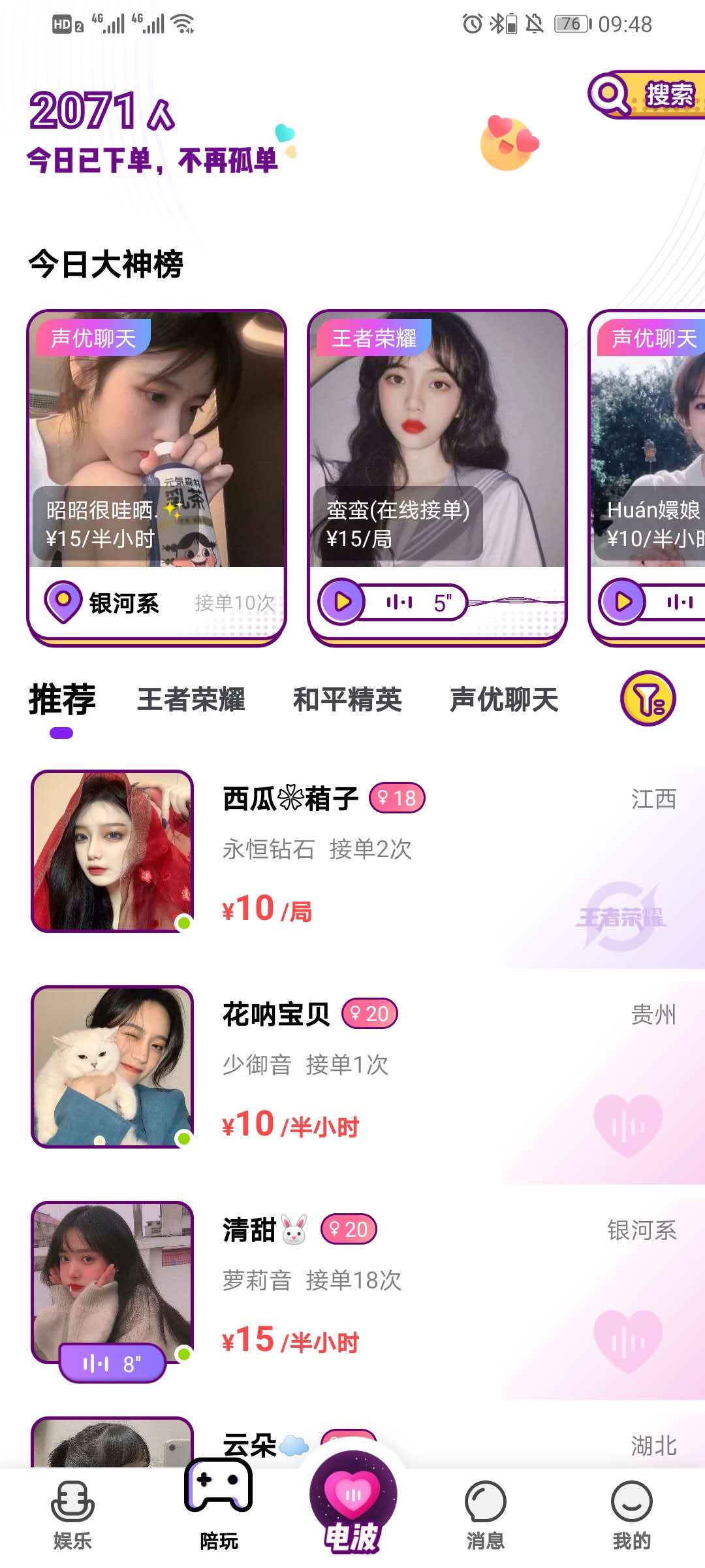 让大神带着你开黑,随时帮你纠正玩游戏的技巧,陪玩的价格都会有所不同,看玩家自己的选择,线上不仅可以提供陪玩服务,还有聊天连麦等各种不同的玩法,都可以在平台上找到自己喜欢的下单。