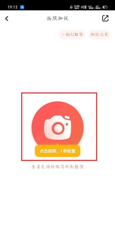 2.然后点击屏幕中间的【相机】拍照,将摄像头对着作业本,拍照进行检查错误;