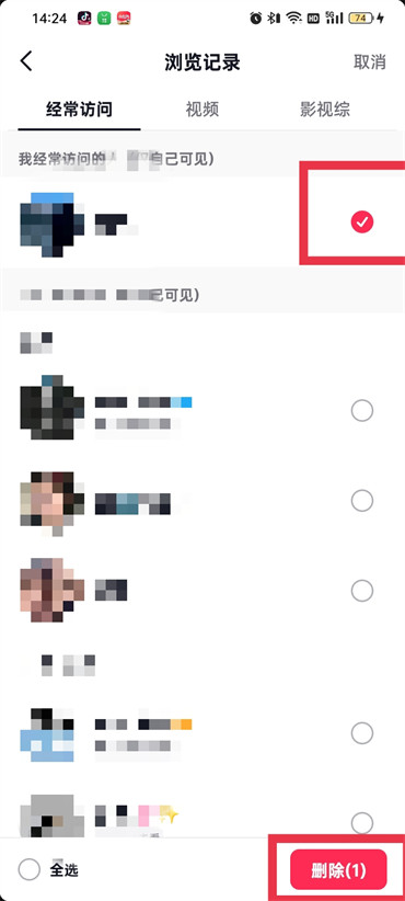 抖音浏览记录怎么删除单个