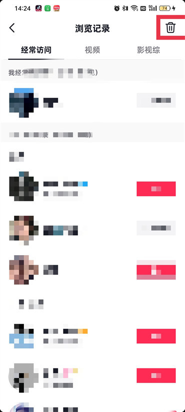 3.进入到浏览记录的页面之后点击右上角的【垃圾桶】图标;