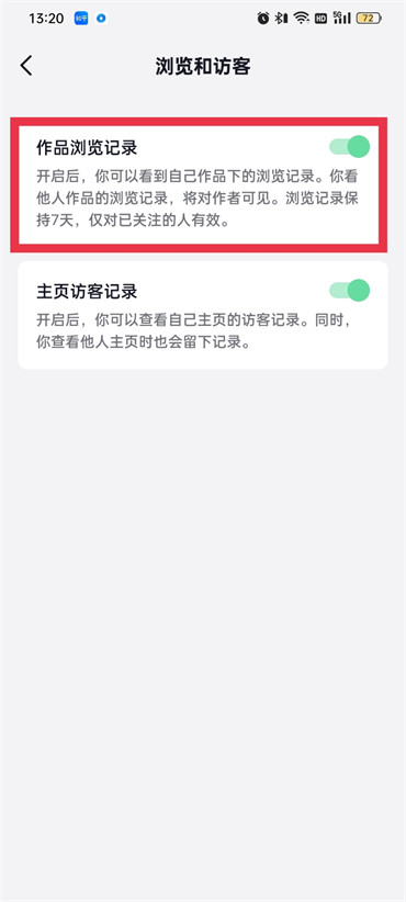 5.最后来到此页面之后点击并开启【作品浏览记录】即可;