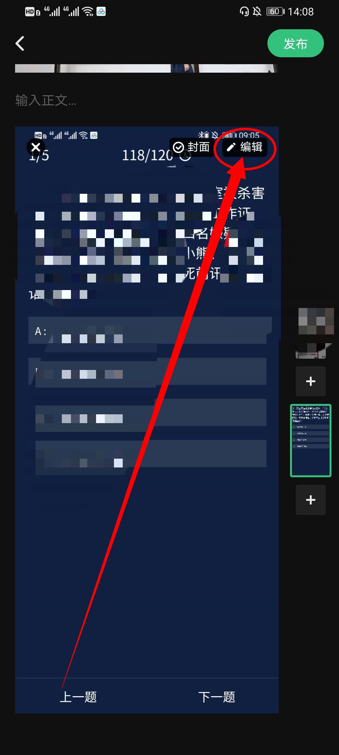 3、在内容编辑界面,点击照片右上方的编辑,进入编辑界面。