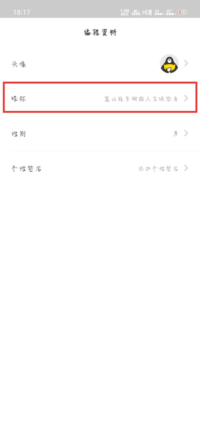 2.进入资料编辑页面后,点击【昵称】一行进入昵称修改页面;