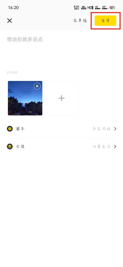 6.然后编辑该贴子的文字、以及选择圈子、合辑,点击【发布】即可;