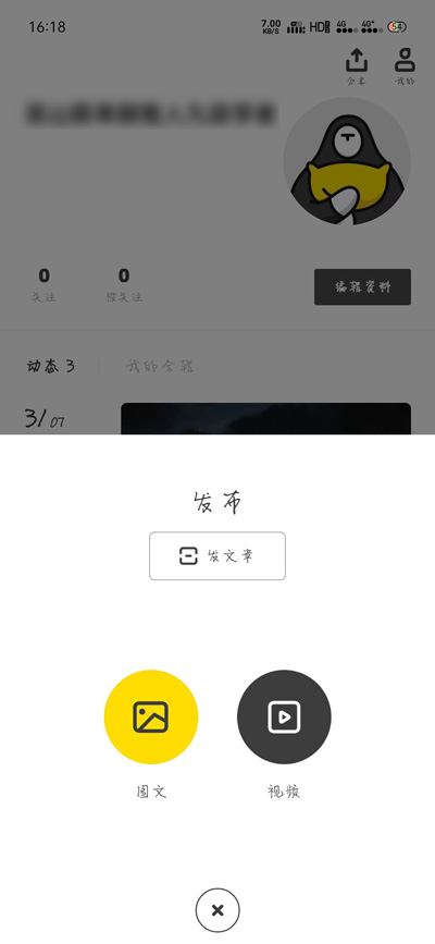 4.点击之后选择我们需要发布的帖子类型:文章、图文、视频,以图文为例;