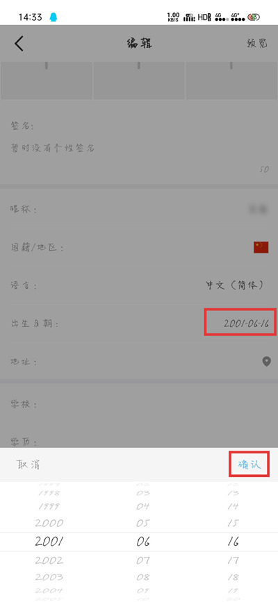 3.找到出生日期设置,点击右侧的出生日期,然后在弹出的窗口中修改年龄;