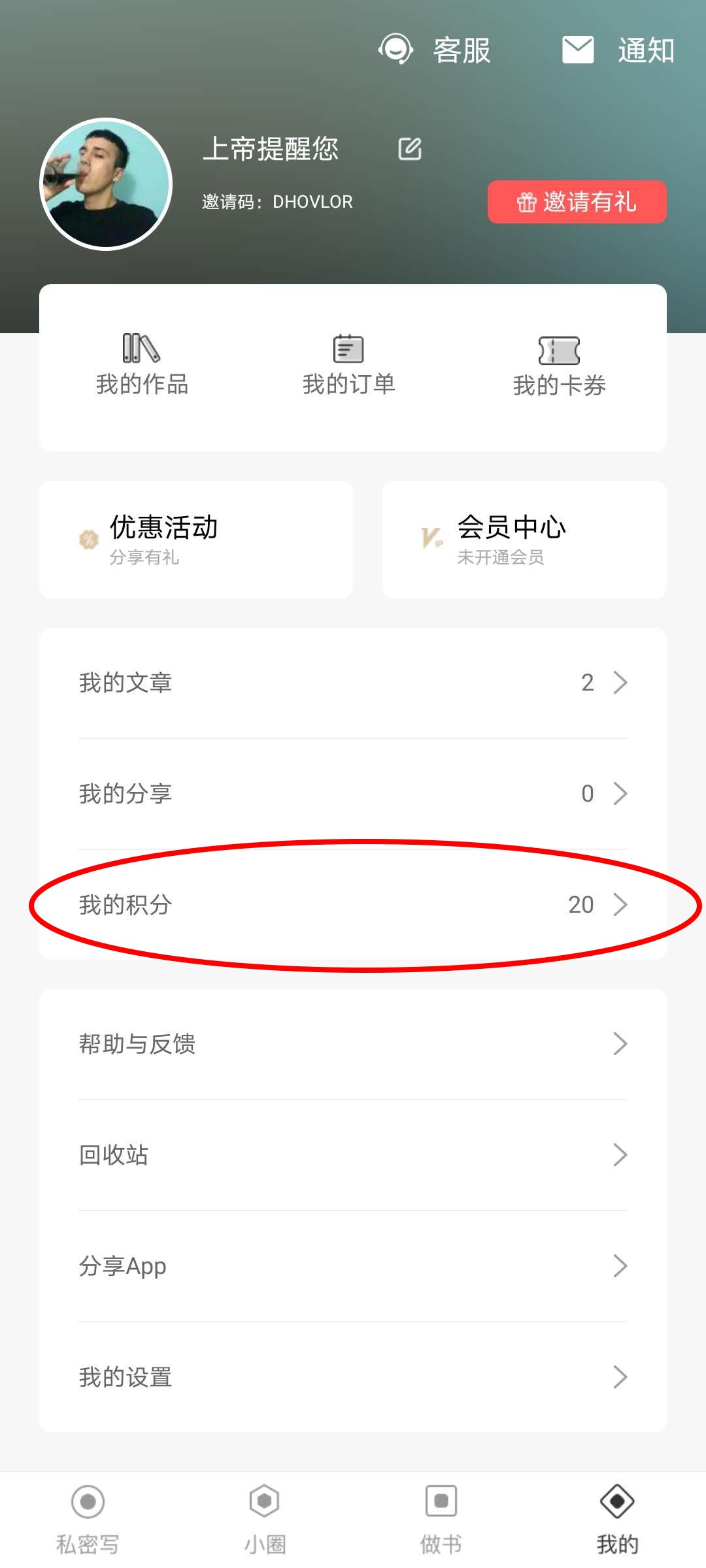 2、在我的界面可以看到自己有多少积分。