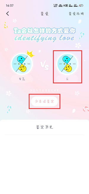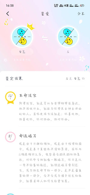 7.分享给好友之后,点击会自动进行鉴爱,等待鉴爱结果出来之后,就可以查看鉴爱结果啦;