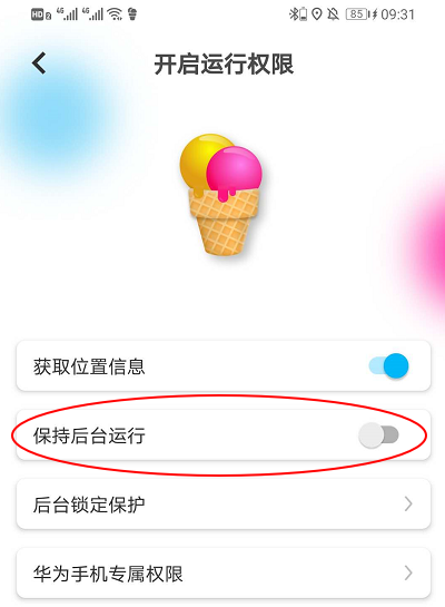 3、在开启运行权限界面,点击打开保持后台运行即可。