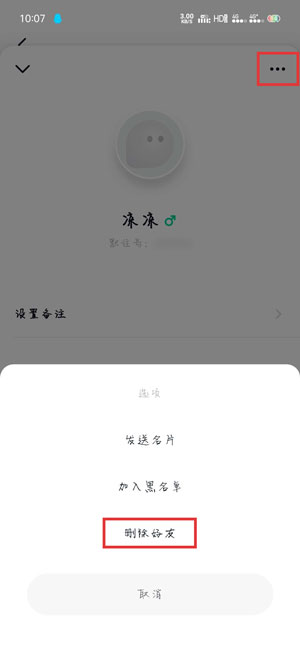 3.继续点击右上角的【更多】,就会出现【删除好友】选项,点击即可删除好友;