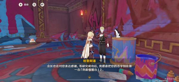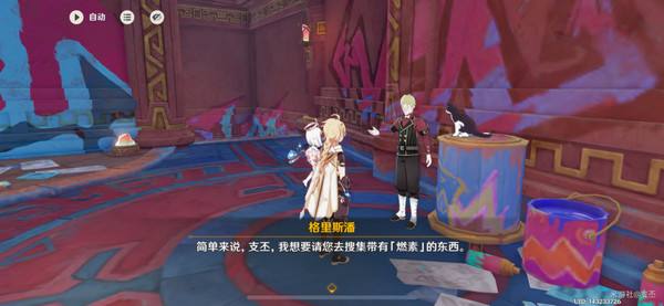 对话得知,他是枫丹人,正在研究制作一台热能仪器,但需要我们帮忙搜集带「燃素」的材料