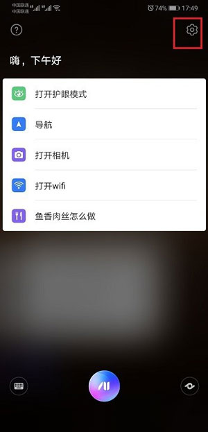 3.在语音助手页面点击右上角的齿轮【设置】进入语音助手设置页面;