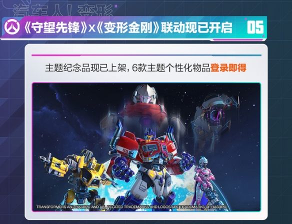 5、变形金刚联动皮肤开放购买,六款主题个性化物品登录即得。