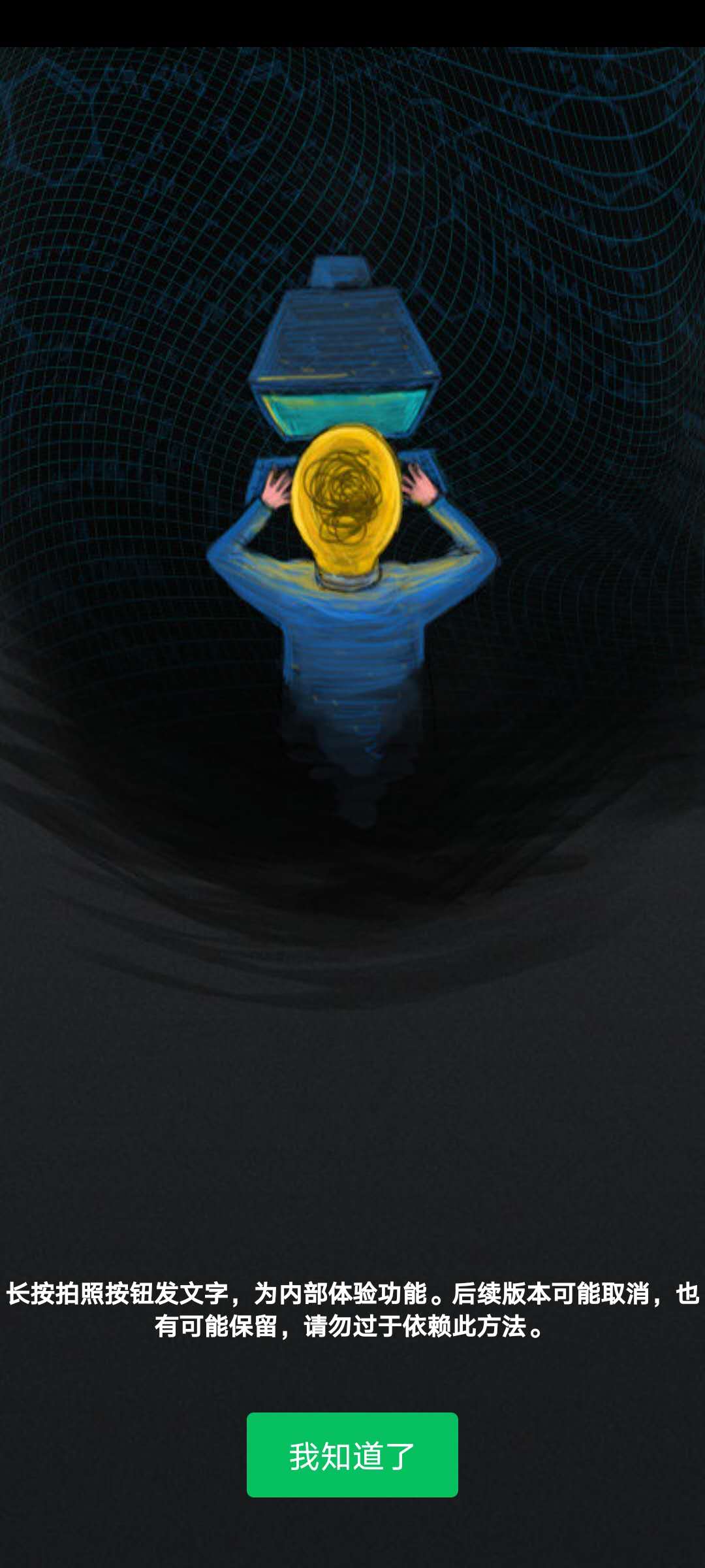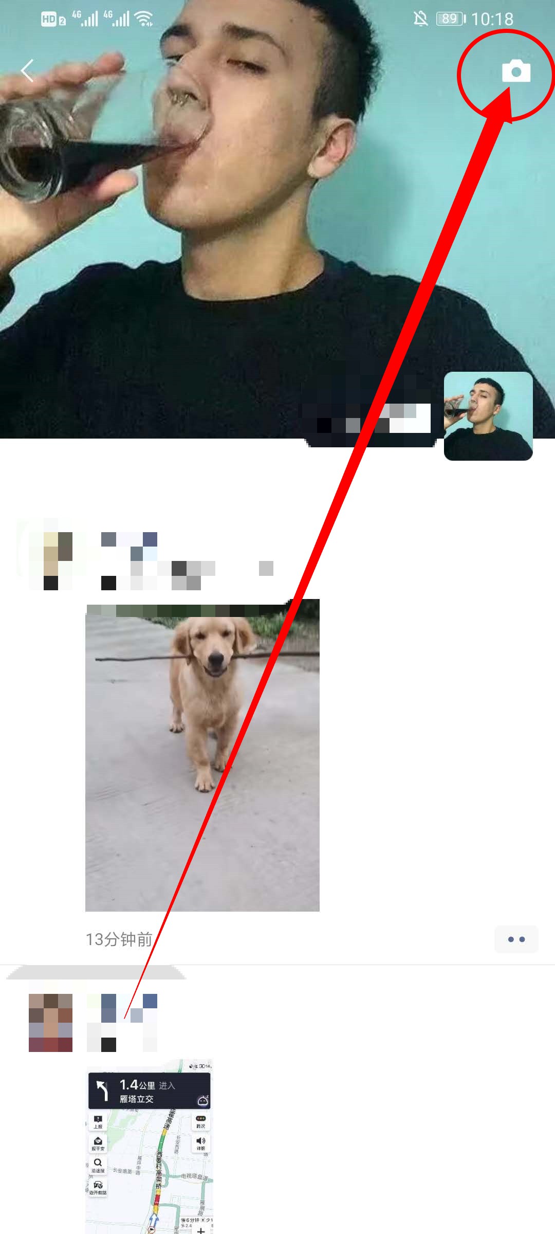 3、在朋友圈界面,长按右上角的相机按钮,会弹出提醒。