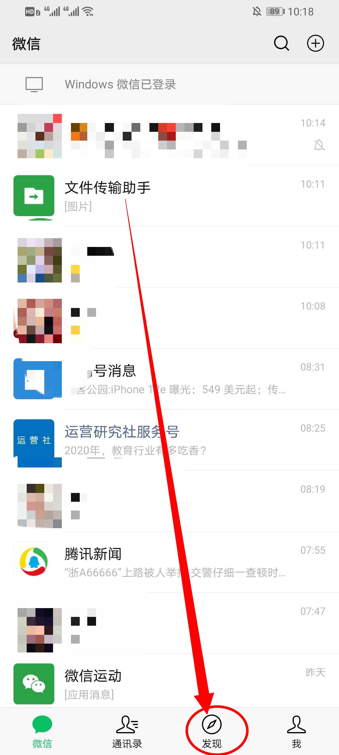 2、在发现界面,点击最上方的朋友圈,点击进入。