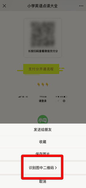 5、长按二维码,点击“识别图中二维码”。