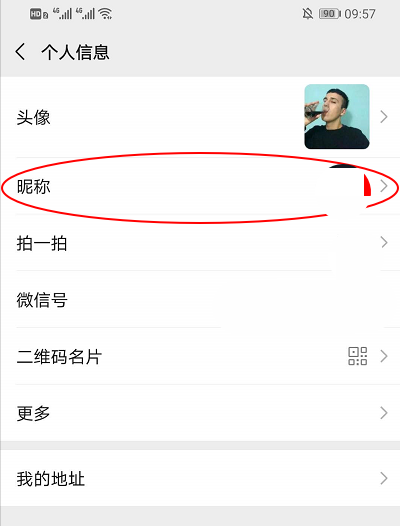 2、在个人资料界面,点击修改昵称,修改为官方提醒。