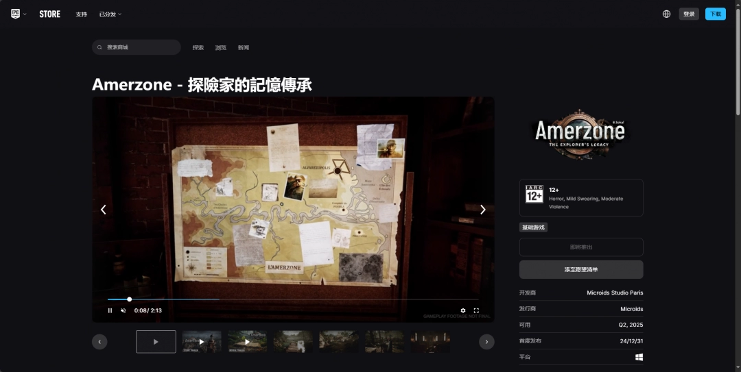 可以去Steam平台下载,地址是:https://store.steampowered.com/app/2429190/Amerzone/。