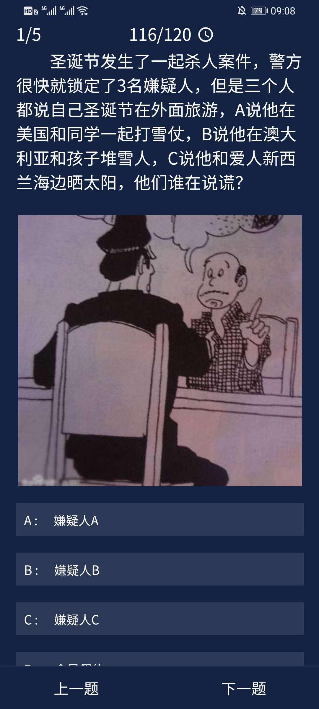 1、圣诞节发生了一起杀人案件,警方很快就锁定了3名嫌疑人,但是三个人都说自己圣诞节在外面旅游,A说他在美国和同学一起打雪仗,B说他在澳大利亚和孩子堆雪人,C说他和爱人新西兰海边晒太阳,他们谁在说谎?