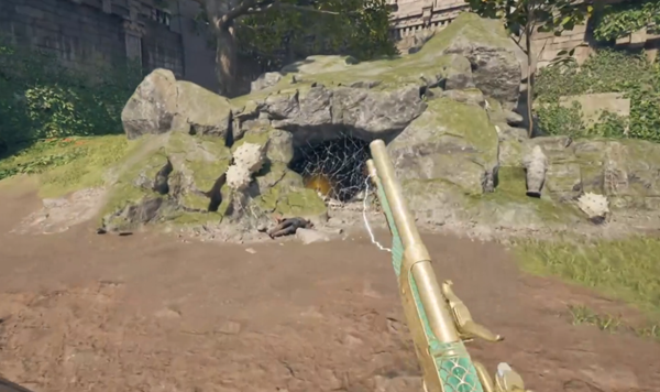 3、过去吧蜘蛛网烧掉,就可以拿到铁绞喉护手了。