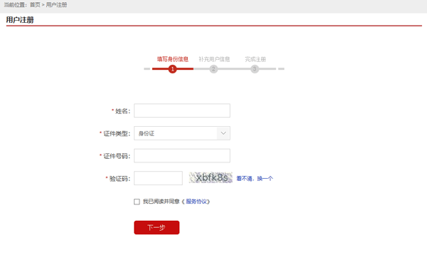 3.在用户注册栏目点击【填写身份信息】、补充用户信息,完成注册即可!