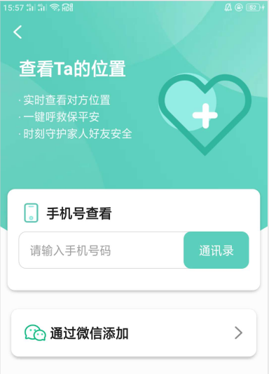 2、点击进入添加关心的人后,在界面中输入手机号或通过微信查看。