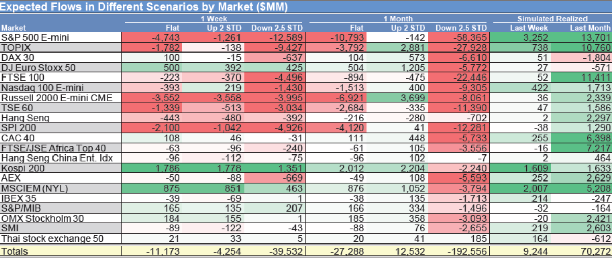 简单总结一下,在各种情况下,CTA都要抛售美股,最坏的情况是,如果全球股市在下个月继续下滑,CTA将抛售1930亿美元的全球股票,即使市场设法反弹,抛售也将持续。