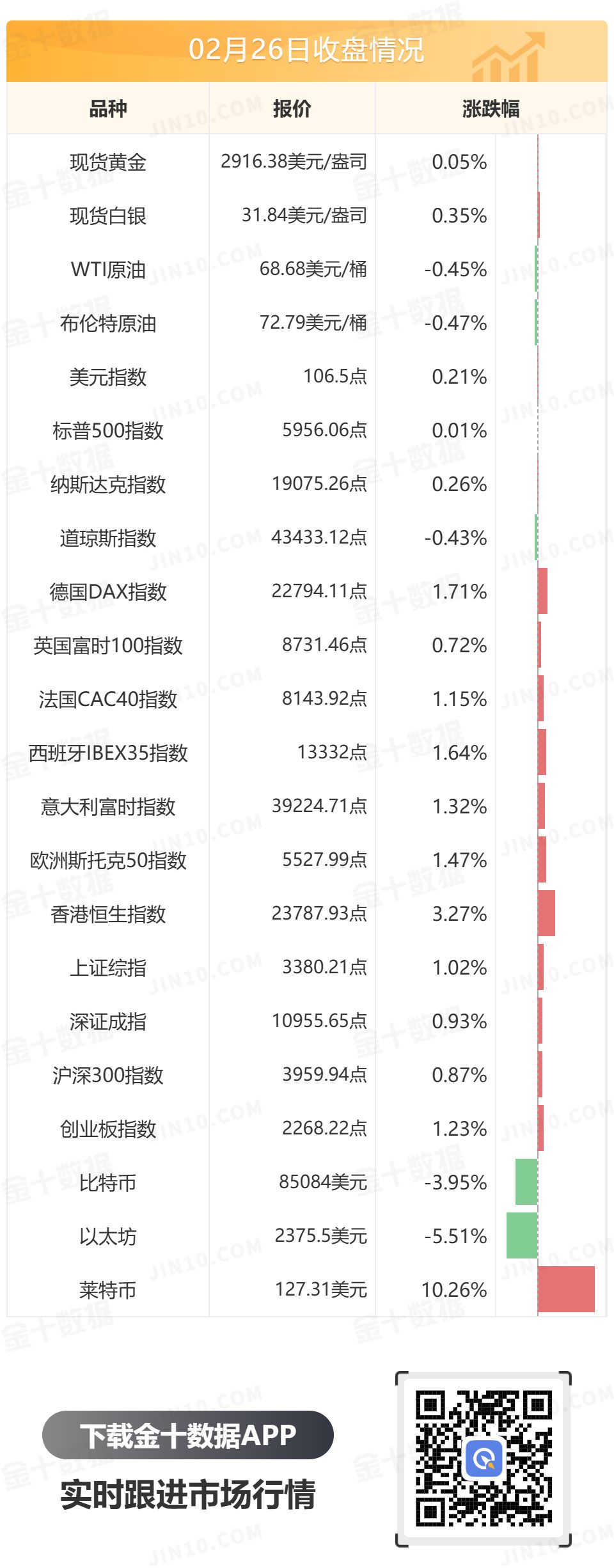 1、特朗普:预计将很快对欧盟征收25%的关税,涵盖汽车和其他商品;欧盟表示将对美国的关税立即做出坚决回应;特朗普对有关墨西哥和加拿大关税实施时间的表态有矛盾。