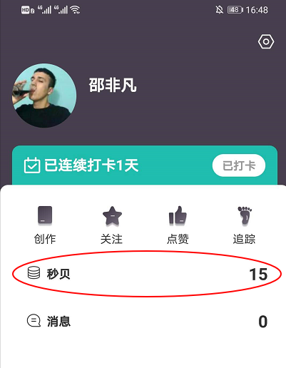 2、在我的界面点击下方的秒贝,进入秒贝的界面。