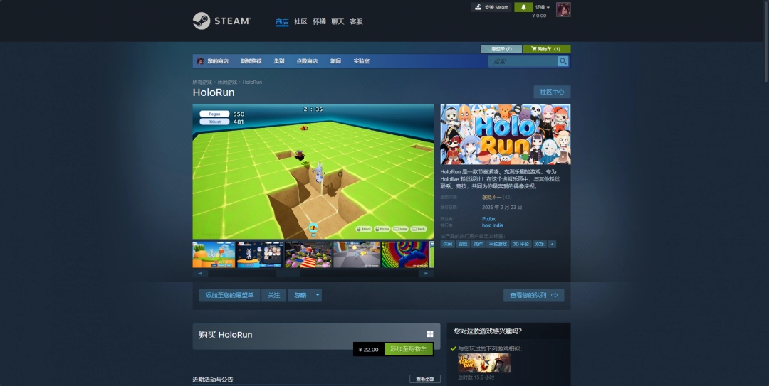 可以去Steam平台下载,地址是:https://store.steampowered.com/app/3389760/HoloRun/。