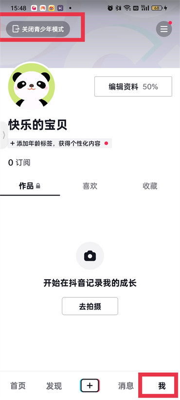 1.首先打开抖音软件进入到抖音页面之后点击右下角的【我】;进入到我的页面之后点击左上角的【关闭青少年模式】;