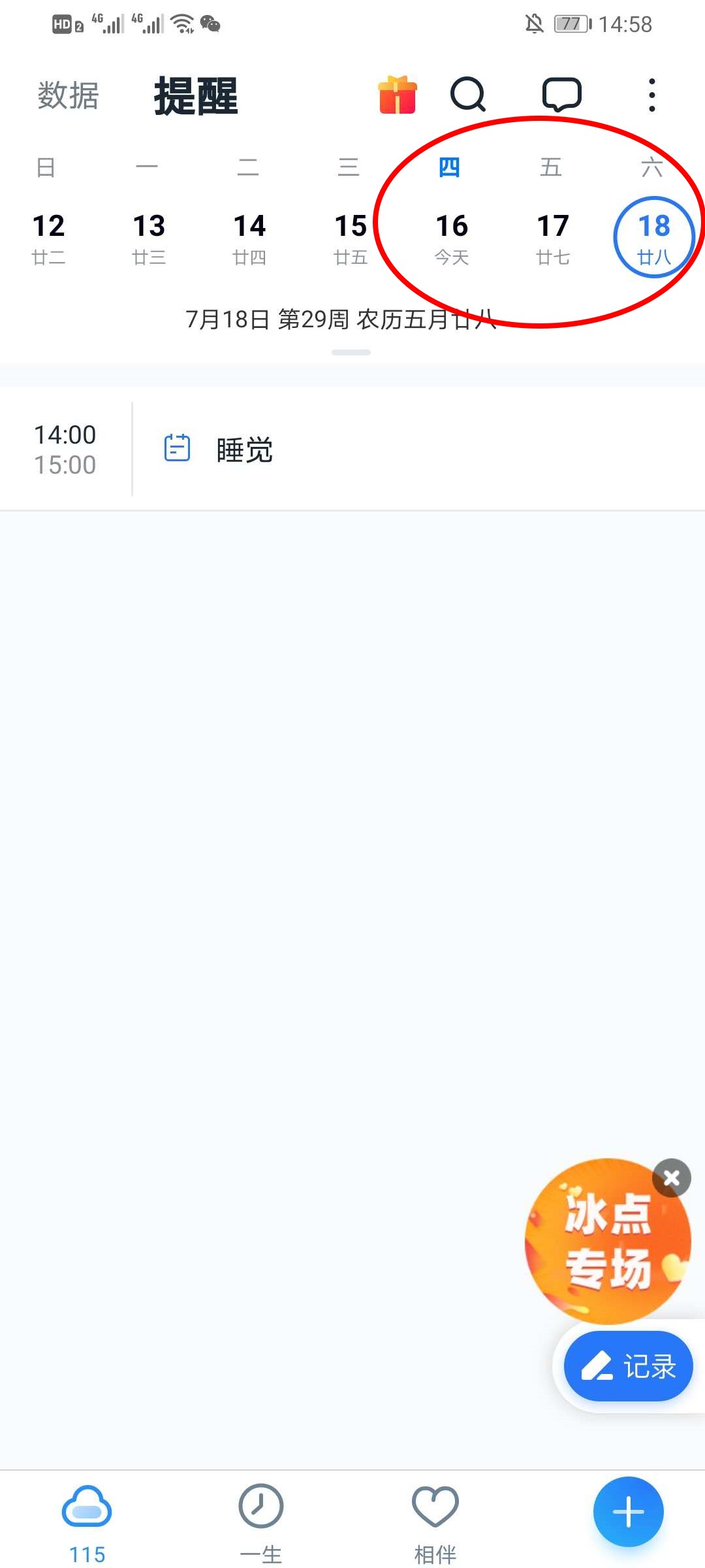 2、在提醒界面,找到自己设置的提醒日期。