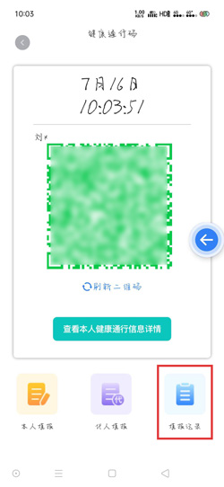 3.点击进入健康通行码页面后,在下方的功能中找到【填报记录】进入查看填报记录;