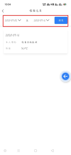 4.之后可以看到最近几天的填报记录,我们可以点击上方选择需要查看填报记录的日期,点击【搜索】即可看到指定之前填报的记录了。
