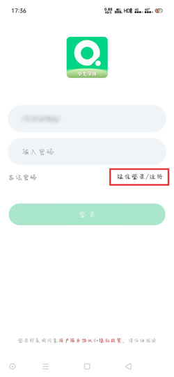 5.如果我们没有登录账号,需要修改账号密码,可以使用短信验证码登录,然后进入APP内重置密码,在登录页面点击【短信登录/注册】;
