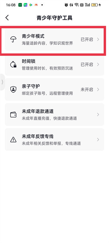 3.来到该页面点击【青少年模式】;