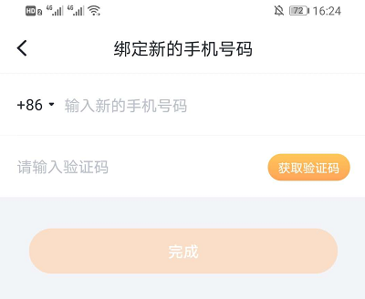 6、在绑定新的手机号时通过手机号码获取验证码绑定。