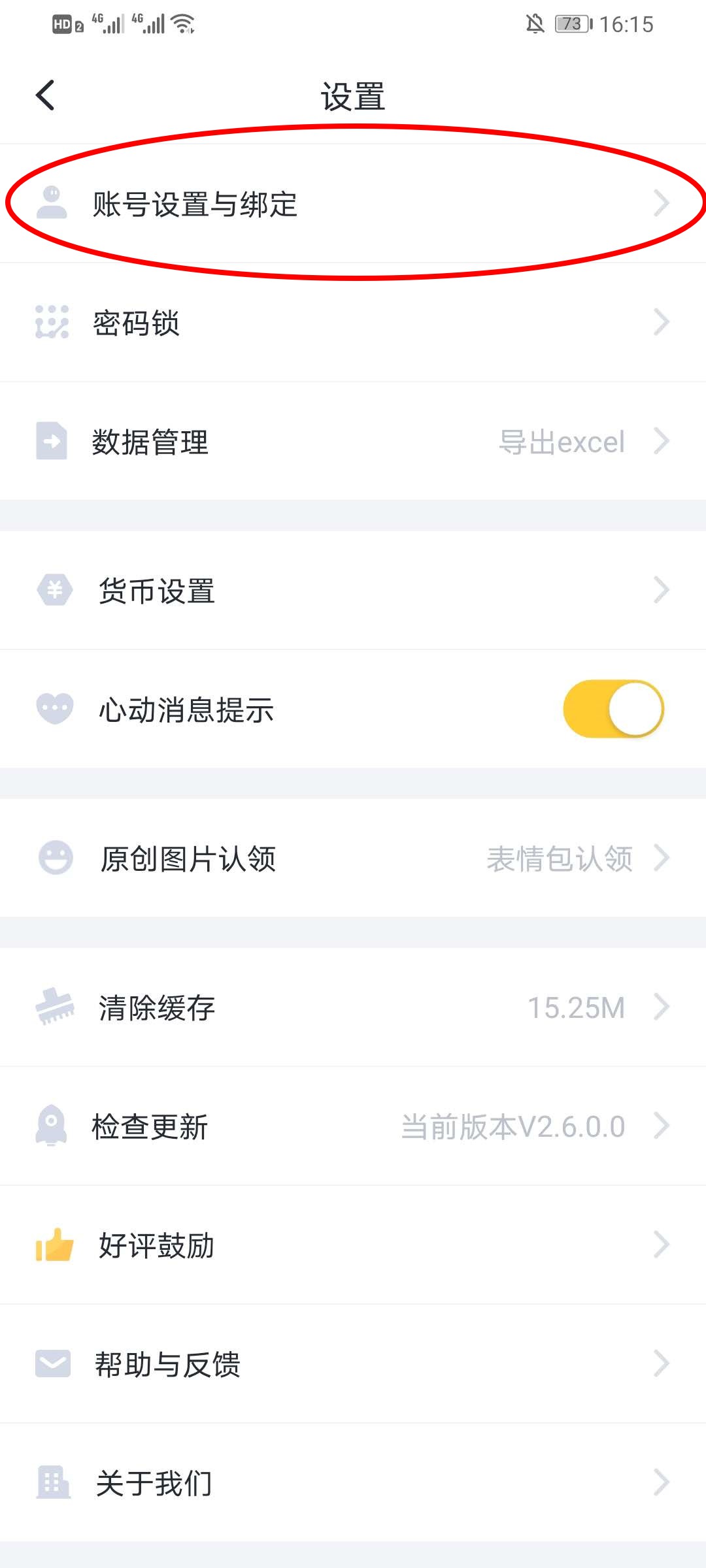 3、在设置中点击账号设置与绑定。