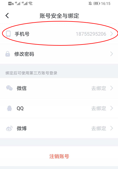 4、在账号安全与绑定中点击手机号。