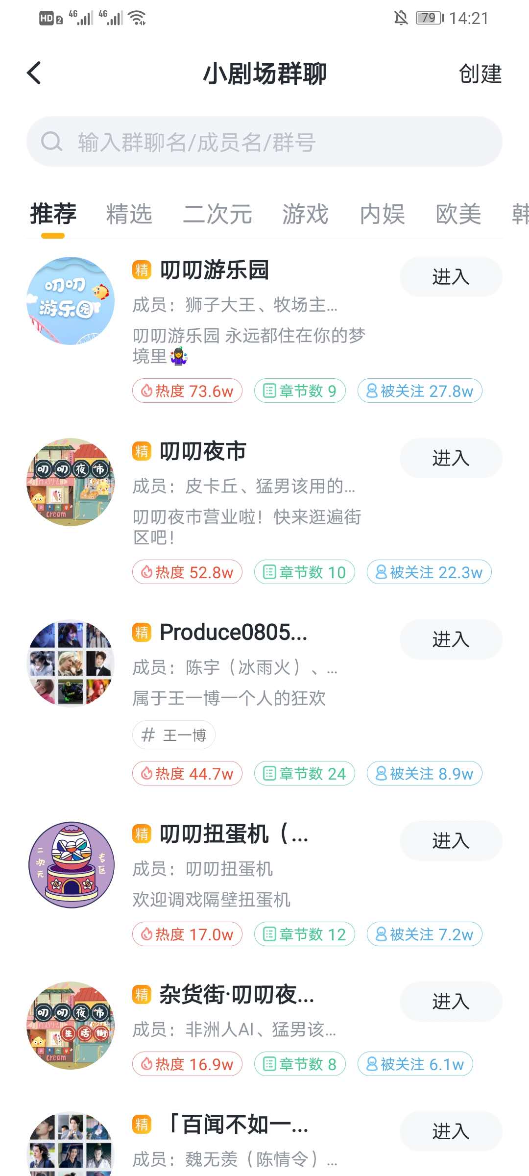3、在小剧场群界面,可以在上方的搜索框中搜索群,也可以在分类中选择感兴趣的群加入。