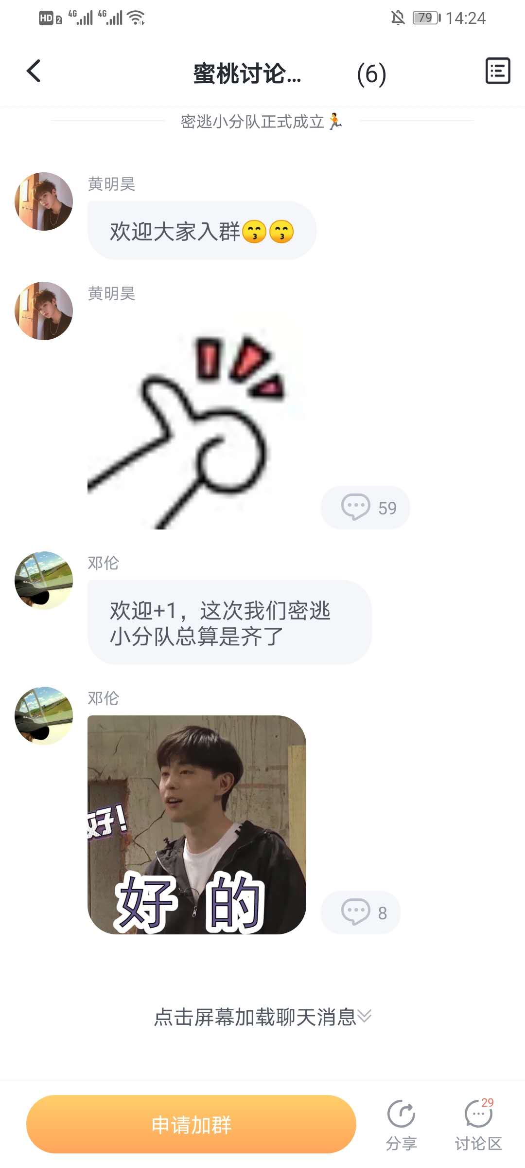 5、在群聊天界面点击左下方的申请加群即可加入群。