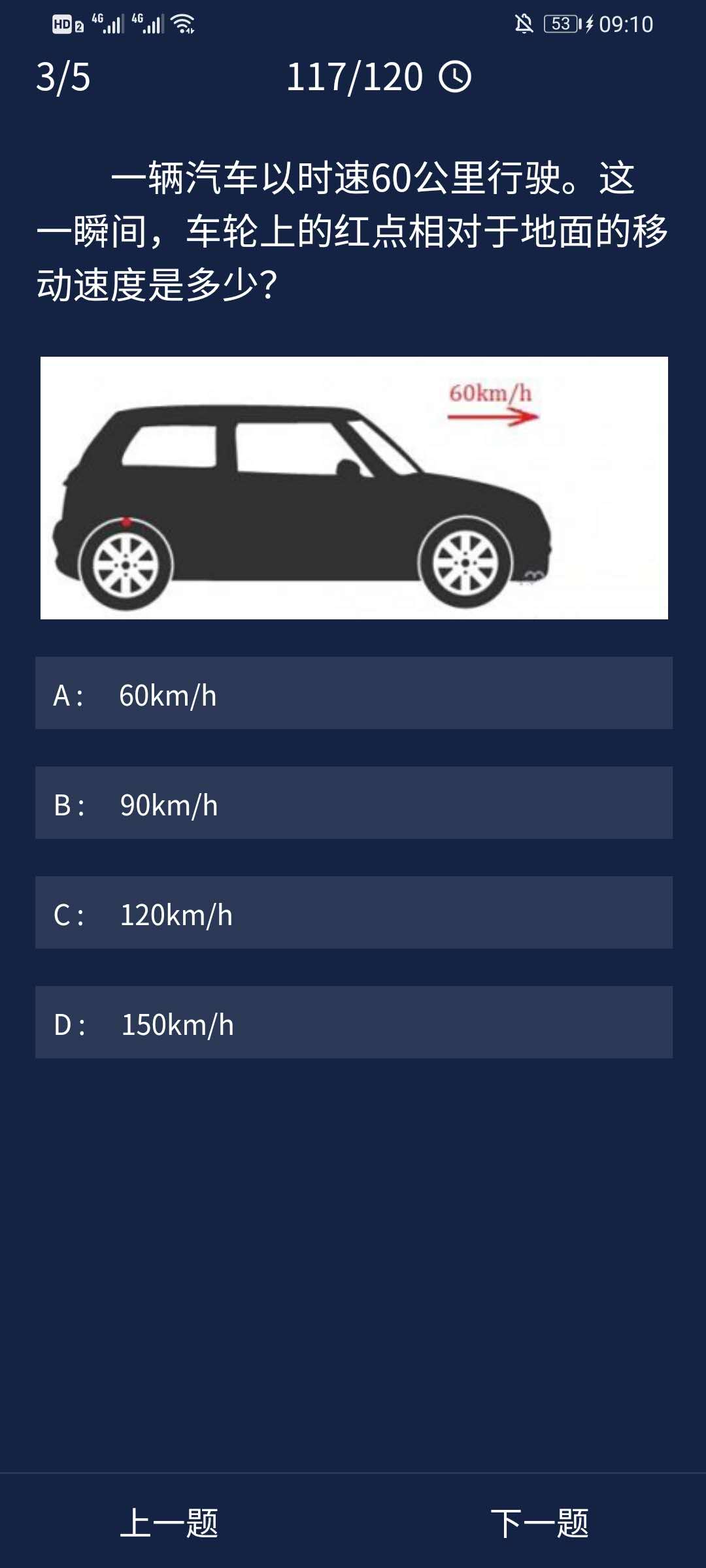 正确答案:C(120km/h)