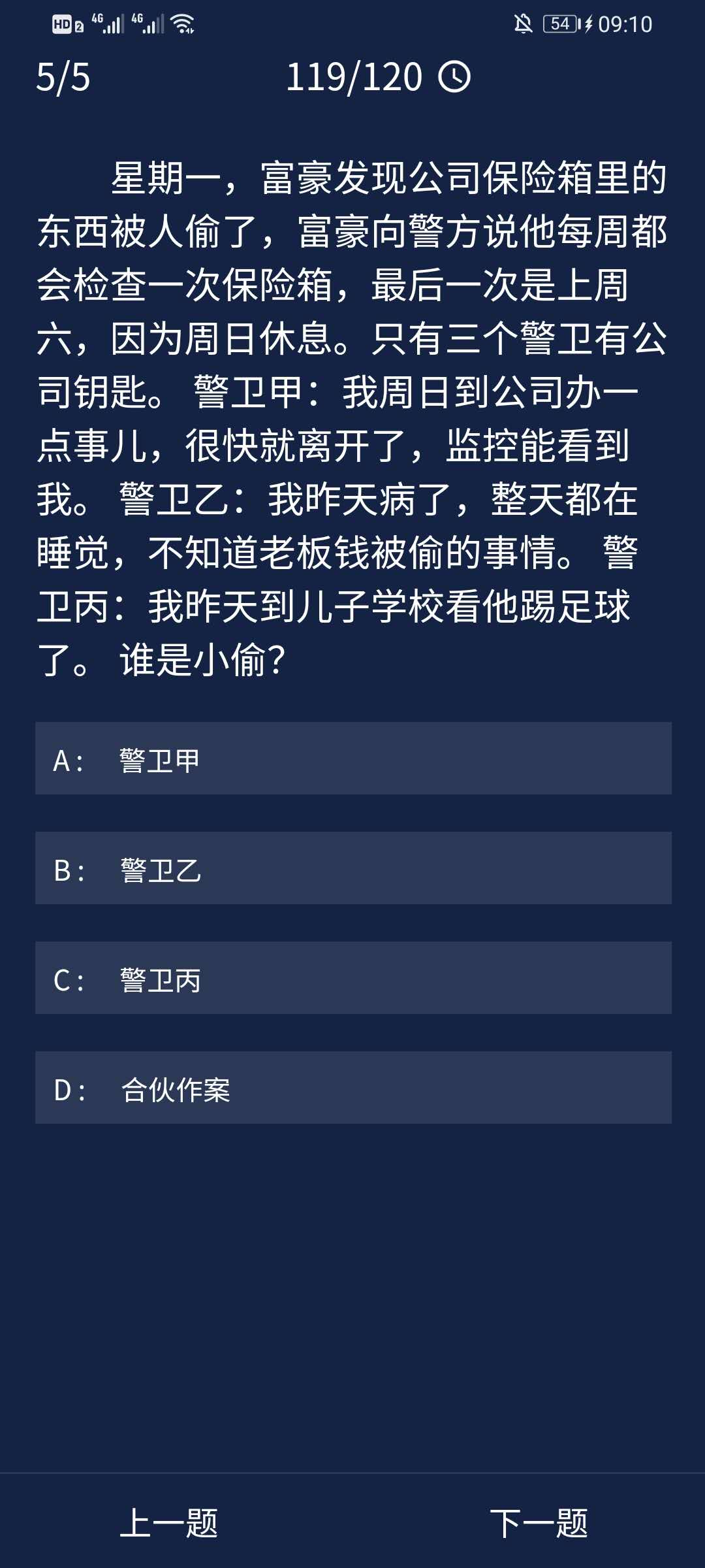正确答案:B(警卫乙)