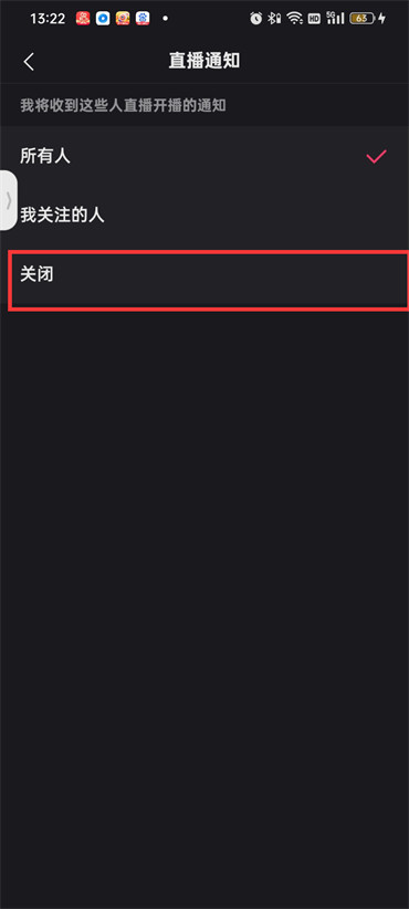 5.最后在直播通知的页面中点击【关闭】即可;