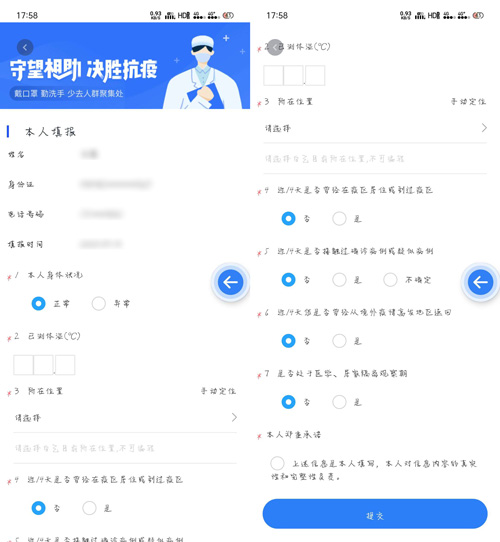 5.【本人填报】可以填写我们进入的健康情况,每日记录自己的身体健康,预防疫情;