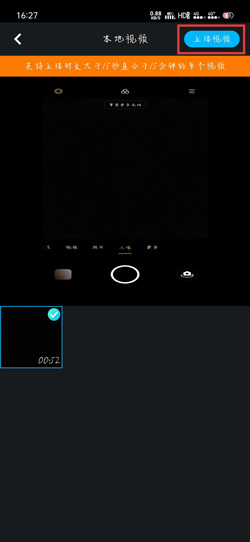 4.选择视频之后,点击右上角的【上传视频】,在选择视频之后,上方会显示视频的封面,封面会变形,但是不用担心;