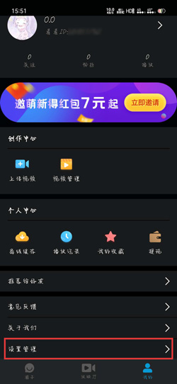 6.我们还可以通过设置修改视频下载的清晰度,但是需要注意的是,设置中的清晰度和视频播放修改的清晰度是同步的,打开【我的 - 设置管理】;