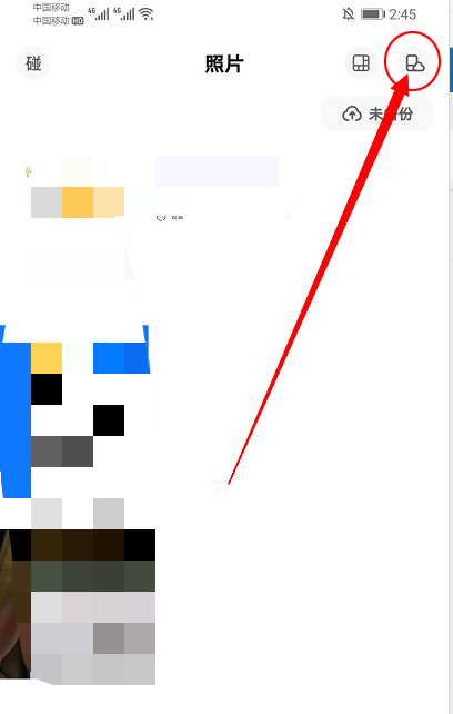 1、打开一刻相册,在首页点击右上方最右边的的小图标。